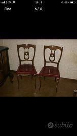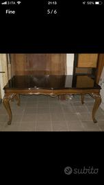 Sala anni '50 in stile chippendale in ciliegio composta da: - 1 buffet - 1 tavolo - 6 sedie I buffet ed il tavolo sono coperti da cristallo bordeaux con disegni dorati.