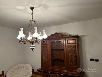 Vendo Sala pranzo del 1968 in ottimo stato conservativo tutto legno vero come da foto con sedie tavolo e volendo anche lampadario. Vetri netta con vano Bar a scomparsa. Misure: su richiesta.
