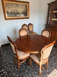 Splendido set da sala da pranzo in stile classico con intagli a mano, realizzato in legno massello di alta qualità.