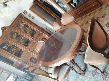 Sala Barocco, compreso di un mobile, un tavolo, sei sedie, due poltrone singole, una poltrona 4 posti, due sedie poltroncine, piu' tavolino centrale e lampadario favoloso.
