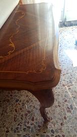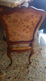 Sala da pranzo legno massiccio barocco piemontese noce nostrano chiaro piegato intarsiato e decorato completa di mobile credenza con specchiera 5 ante, tavolo 6 posti, 6 sedie in velluto damascato. Vendesi ad esperti del settore.