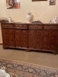 Vendo mobili per sala in stile classico completa di: Tavolo, 6 sedie, credenza e mobile con vetrina e libreria. Disponibile anche divano letto 3 posti in pelle . Mobili da smontare e ritirare.