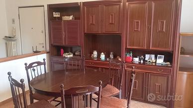 URGENTE. VENDO CAUSA TRASLOCO. Sala completa di tavolo, 6 sedie e mobili. Tavolo allungabile. La vetrinetta che si vede in una foto a parte è possibile unirla al mobile grande. Le 4 unità sono intercambiabili secondo il gusto personale.