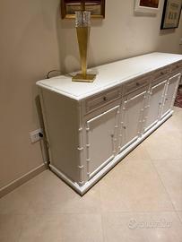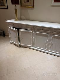 Vendo mobile in rattan e mocano bianco con annesso tavolo in vetro quattro sedie in rattan misure mobile larghezza 215 tavolo 125 x 125