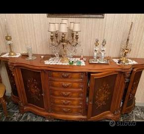 sala completa in ottime condizioni. tavolo con sei sedie, pendolo,credenza e vetrinetta. vendibili anche separatamente.