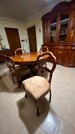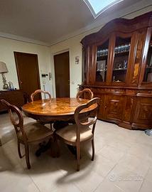 Vendo sala completa : Mobile in legno massello, esternamente buone condizioni, internamente ripiani integri e intatti tranne qlc piccola scoloritura interna facilmente correggibile. Tavolo in legno massello+4 sedie imbottite . Prezzo trattabile