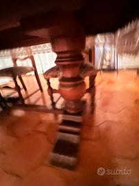 Sala in legno stile classico, in buono stato. Completa di credenza con vetrine ( 265x52 cm h=215 cm), tavolo (190x97 cm h=80 cm), 6 sedie e mobiletto per tv. Vendibile separata