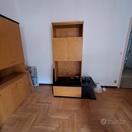 sala in betulla , con top e mensola di colore nero. Per mancanza di spazio la sala non è stata completamente assemblata ma è comprensiva di mensole, tavolo dello stesso colore da inserire ad es tra due divani ed un altro mobile.
