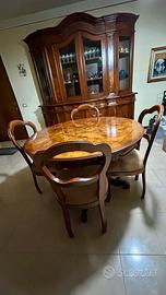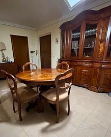 Vendo sala completa : Mobile in legno massello, esternamente buone condizioni, internamente ripiani integri e intatti tranne qlc piccola scoloritura interna facilmente correggibile. Tavolo in legno massello+4 sedie imbottite . Prezzo trattabile