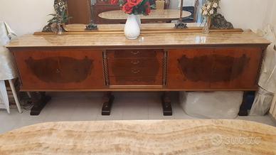 Sala da pranzo anni'60 ben conservata e tutt'ora in uso, composta da tavolo con 6 sedie, mobile con 4 ante e 4 cassetti, specchio grande, credenza e lampadario con 15 lampadine.