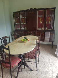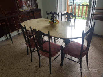 Vendo arredo sala anni 70. Completo di tavolo in marmo color panna e 6 sedie in tessuto rosso ricamato