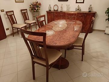 Vendo sala da pranzo anni 90 mai utilizzato in perfette condizioni, il soggiorno comprende tavolo, 6 sedie, vetrinetta con luce interna e madia. Disponibile per la visione. Trasporto e smontaggio a vostre spese. Non si effettuano spedizioni.