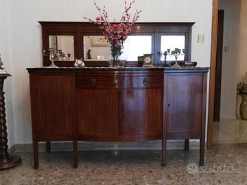 - Madia in legno con ripiano in marmo e specchio frontale.