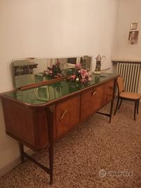Sala da pranzo anni 50 con tavolo con vetro due mobili con specchio