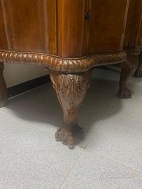 Una sala da pranzo d'antiquariato di pregio in legno di noce con finiture di alta qualità, ideali per amanti del gusto antico e dell'arredamento classico, è composta da: