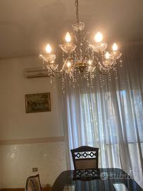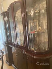 Vendesi eleganti arredi per sala da pranzo coordinati, ideali per chi cerca uno stile classico e prestigioso. I mobili sono stati tenuti con estrema cura e presentano una bellissima finitura lucida con dettagli curati. Il set comprende: 1.Tavolo da Pranzo con Sedie: Ampio tavolo rettangolare con angoli smussati e raffinati inserti in vetro trasparente sul piano. Perfetto per cene di rappresentanza. 2.Credenza/Vetrina Cristalliera: Grande mobile contenitore con ante in vetro sagomate nella parte superiore, ideale per esporre servizi di piatti e cristalli. Dotata di cassetti e ampi vani chiusi nella parte inferiore. 3.Lampadario: Splendido lampadario a più bracci in vetro/cristallo con pendenti coordinati, che dona una luce calda e accogliente all'ambiente. Condizioni: Ottime, nessun segno evidente di usura. Prezzo: 850,00€ - Trattabile se acquistati in blocco. Note: Smontaggio e trasporto a carico dell'acquirente (Zona: Napoli)