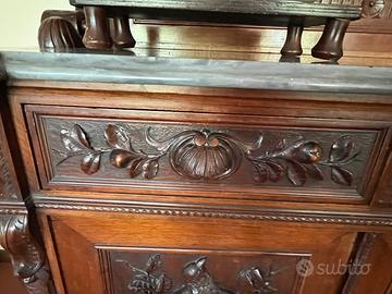 Vendo elegante sala da pranzo completa in legno massello, in stile classico/antico, composta da: • Credenza con vetrina e vetri decorati • Tavolo coordinato • 6 sedie Mobile solido e di qualità, con belle finiture e dettagli lavorati. Ideale per chi cerca un arredamento classico e completo. Il vetro della credenza presenta una lieve crepa, poco visibile e che non compromette l'utilizzo. Condizioni: buone condizioni generali. Nota importante: Vendo per necessità di liberare la stanza a breve Ritiro: Smontaggio e trasporto a carico dell'acquirente. Zona: Castelli Calepio (BG) Per informazioni o per venire a vederla, contattami in privato.
