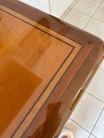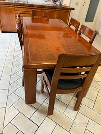 Vendo sala da pranzo, legno massello in noce nazionale, firmata dall’architetto Fabrizio POLDARETTI. La sala si compone di un mobile basso lungo 2,55 mt per 55 cm di profond.e 90 cm dí altezza più un mobile alto lungo 2,10 mt per 55 cm di profon. e 1,52 di altezza. Il tutto si completa di tavolo lungo 1,85 mt per 90 cm di larghezza e 75 cm di altezza , 6 sedie e 2 mensole da 1,5 mt . A parte una bruciatura sul mobile alto dovuta ad una candela ( ma non visibile) e impercettibili segni del tempo, lo stato dei mobili è buono. Smontaggio e trasporto a carico dell’acquirente.