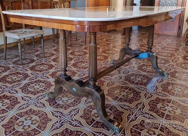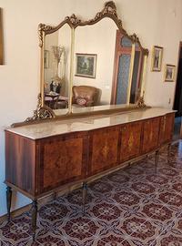 Sala da pranzo stile chippendale (raffinata stilizzazione di elementi e motivi tratti dall'arredamento francese, dalla tradizione gotica e da fonti esotiche) composta da tavolo per 10 persone con superficie in marmo, mobile con superficie piana in marmo con ampia specchiera e credenza vetrata. Ritiro e trasporto a carico del compratore