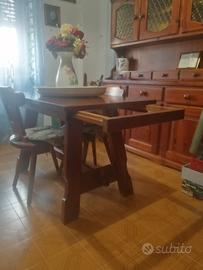 Sala in legno massello. Mobile tavolo allungabile e 5 sedie. Trattabile