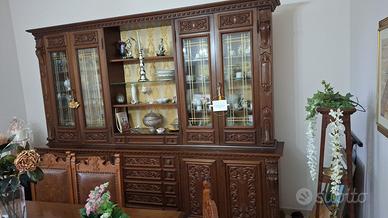 Vendesi sala da pranzo, composta da: - vetrinetta componibile (h 2,26 x larg 3,26, prof 63) - tavolo 8 posti con sedie (2 m x 92cm) - salotto in velluto + 2 poltrone
