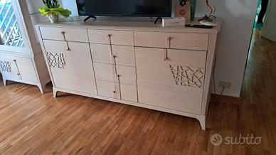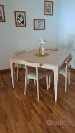 Un tavolo 115×115 allungabile 175 Una vetrina con anta cassetto 86x56x212 Un servante 200x56x98 Quattro sedie fondino imbottito