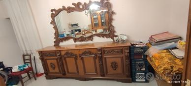 Sala da pranzo completa è tenuta in ottime condizioni. Composta da 2 mobili grandi 3 ante e 4 ante, una credenza 3 ante, uno specchio grande, un tavolo per 6 persone e 6 sedie.Nel prezzo NON è compreso lo smontaggio e trasporto, Non spedisco. Prezzo poco trattabile. No Perditempo!