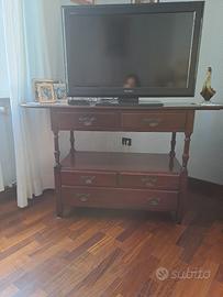 Sala da pranzo in legno massello , tavolo tondo diametro 120 cm. allungabile credenza con cristalliera 2.01. 46 , 1.66 cm ,