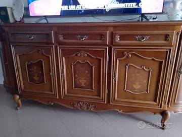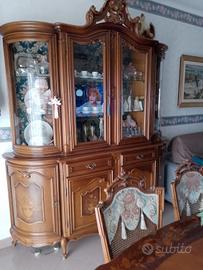 buffet, cristalliera, tavolo intarsiato con 6 sedie