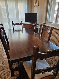 Vendo sala da pranzo in legno massello fatto da falegname interamente a mano. Composta da: - Credenza - Tavolo con 6 sedie Smontaggio e ritiro a carico del destinatario. Acquistabili anche separatamente. PREZZO TRATTABILE