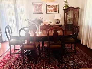 Vendo splendida sala da pranzo completa, realizzata in legno massello finitura noce, dal design classico e senza tempo, in ottimo stato.