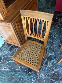 Mobili in noce nazionale fatti a mano da un prestigioso falegname di Cantu’, risalenti agli anni 70/80,in perfette condizioni, solo 3 delle 6 sedie totali avrebbero bisogno di rifacimento impagliatura. Prodotto di alta qualità con grande attenzione di tutti i dettagli,non esistono chiodi,assemblati solo con tasselli di legno. È presente una credenza , una cristalliera , un tavolo di cm. 175 e 6 sedie, con tanto di certificazione e fattura, per misure e altre foto chiedere senza problemi. Vendo anche pezzi singoli , ritiro in loco, no spedizione
