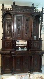 Vendesi sala da pranzo in noce dei primi del '900 composta da 2 credenze, vendibili anche separatamente +tavolo allungabile e 6 sedie. Sono presenti anche due figure di leoni da porre sulla sommità delle due credenze