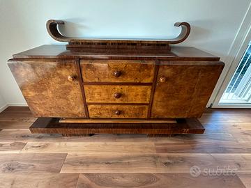 Vendesi sala da pranzo anni 50 in radica di noce in buono stato di conservazione composta da - 2 credenze - 1 tavolo allungabile da 6/10 posti - 6 sedie - 1 mobiletto porta televisione PEZZI NON VENDIBILI SINGOLARMENTE
