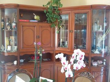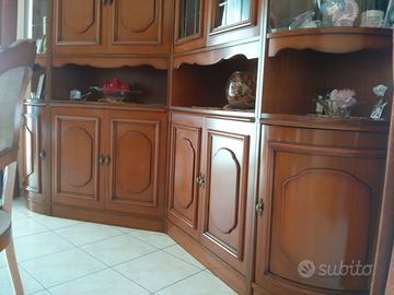 Splendida parete soggiorno color Ciliegio stile classico anni 90 componibile.