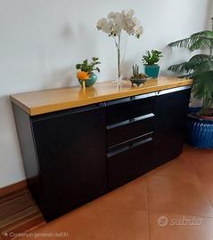 - una madia laccata nero opaco da centro stanza ,rifinita da tutti i lati.