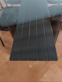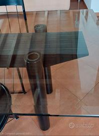 - tavolo cristallo temperato con bisello, base laccata nera opaca