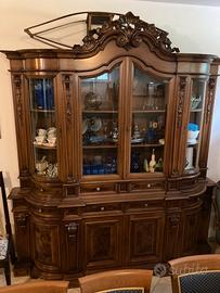 Sala da pranzo completa in noce, tavolo cm 120x120 allungabile cm 160x120 completo di 6 sedie, mobile con vetrina, ritiro in loco