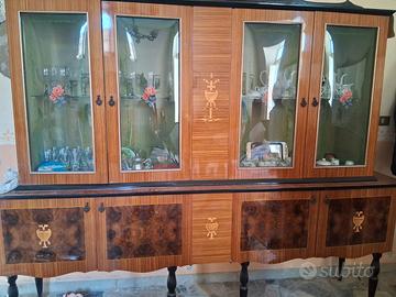 Sala.da pranzo (materiale oegno e marmo)composta da una credenza,un mobile con specchio con cornice in legno,tavolo in legno e marmo e 4 sedie. Sono da pulire Smontaggio trasporto sono a carico dell acquirente. Prezzo trattabile