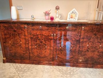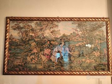 Sala da pranzo in radica di noce con tavolo+ 6 sedie e quadro arazzo