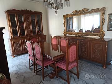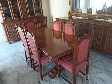sala da pranzo completa di tavolo e se sedie in noce , vendo a 550 euro non trattabile,euro zona piazzale Prenestino