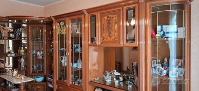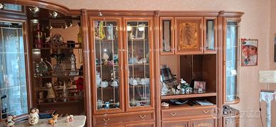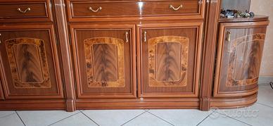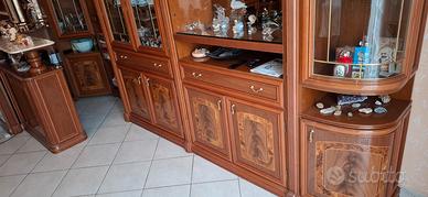SALA DA PRANZO CLASSICA IN LEGNO – COMPLETA 💰 PREZZO: 650 € TRATTABILI Vendo sala da pranzo completa in legno di ciliegio con inserti in radica, in ottimo stato di conservazione. ✅ COMPOSIZIONE INCLUSA: • Grande parete attrezzata con vetrine illuminate (luci interne funzionanti) • Ante con inserti in radica pregiata e maniglie in ottone • Ante a specchio e ripiani in vetro • Vano TV centrale • Cassettoni e ante con ampio spazio contenitivo • Angolo bar con struttura ad arco, ripiani a specchio e luci • Bancone bar con piano in onice/marmo • Colonnine decorative tornite 🔶 CARATTERISTICHE: • Legno massello di alta qualità, finitura laccata lucida • Stile classico italiano anni '90 • Condizioni: ottime, nessun difetto strutturale ⚠️ VENDO SOLO IL TUTTO INSIEME – NO SMEMBRAMENTO 📦 Lo smontaggio e il trasporto sono a carico dell'acquirente 📍ROMA 📞 Contattare al: 3337144306 ❗ Seria intenzione di acquisto richiesta. Priorità a chi può ritirare subito.