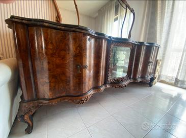 Vendo sala da pranzo in stile Chippendale in piuma di noce completamente retaurata, composta da: buffet e controbuffet con sopralzo specchiera in appoggio