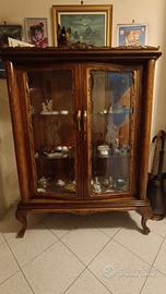 Vetrina espositiva: Mobile a due ante in vetro con ripiani interni, perfetta per esporre servizi di piatti o cristalli. Gambe mosse coordinate al resto del set.
