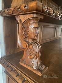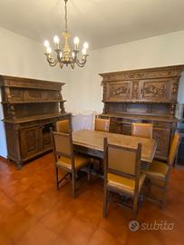 Vendo sala da pranzo in stile rinascimentale dei primi del Novecento. Composta da 2 credenze, un tavolo allungabile e 6 sedie. Trasporto a carico dell’acquirente