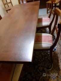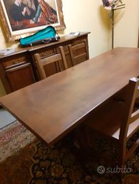 sala da pranzo in legno noce americana, lavorazione artigianale con vetrina ( cristalliera) ,base e tavolo ,6 sedie