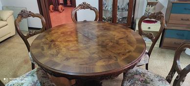 Vendo sala completa composta da tavolo rotondo + 6 sedie + credenza grande con vetrina + mobile vetrina coordinati, in stile classico elegante con intagli e finiture ricercate. Un set importante, ideale per chi ama l’arredo tradizionale e vuole una sala calda e di carattere.