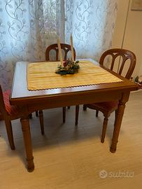 Sala da pranzo completa, composta da vetrina appoggiata ad un mobile a 3 ante, credenza a 4 ante, tavolo quadrato con apertura a portafoglio (aperto raddoppia il suo spazio) presenta una piccola imperfezione estetica e 4 sedie. Attenzione tutto in noce massello! (No truciolato, no compensato). Vendo per cambio arredamento in stile moderno. No affaristi, perditempo. I mobili sono di qualità e pertanto il prezzo è solo leggermente trattabile.