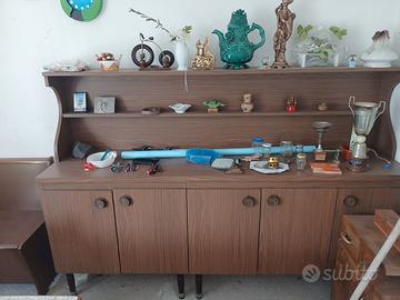 Vendo sala da pranzo completa come da foto comprende tavolo con 4 sedie giro panca vetrina e un mobile credenza