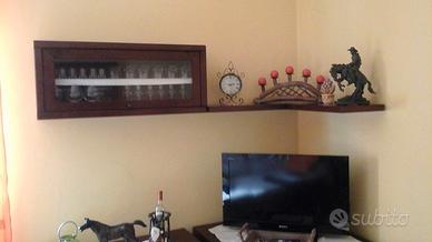 Vendo sala in noce massiccio pari al nuovo composta da Tavolo allungabile, 6 sedie, base rettangolare, base angolare, vetrinetta e mensola, mobile credenza con antine e vetri. Tutti i vetri in cristallo molato.
